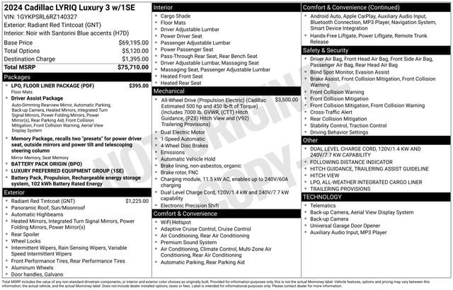- All-Wheel Drive (Propulsion Electric) (Cadillac Estimated 500 hp and 450 lb-ft of Torque) (Includes 7000 lb. GVWR, (CTT) Hitch Guidance, (PZ8) Hitch View and (V92) Trailering Provisions)