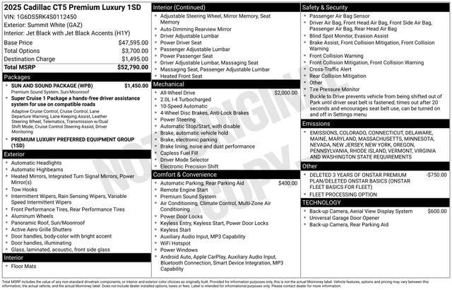 CARFAX One-Owner. Clean CARFAX. Summit White 2025 Cadillac CT5 Premium Luxury