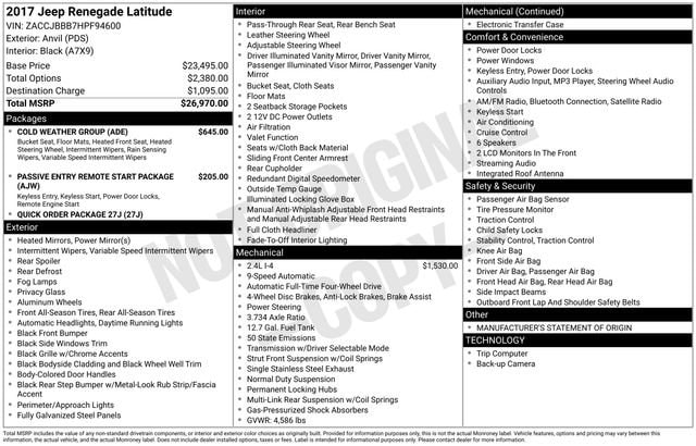 Clean CARFAX. Anvil 2017 Jeep Renegade Latitude