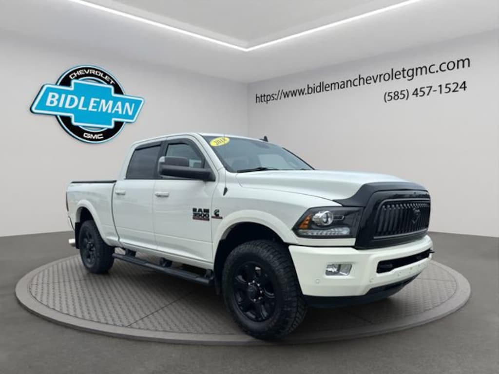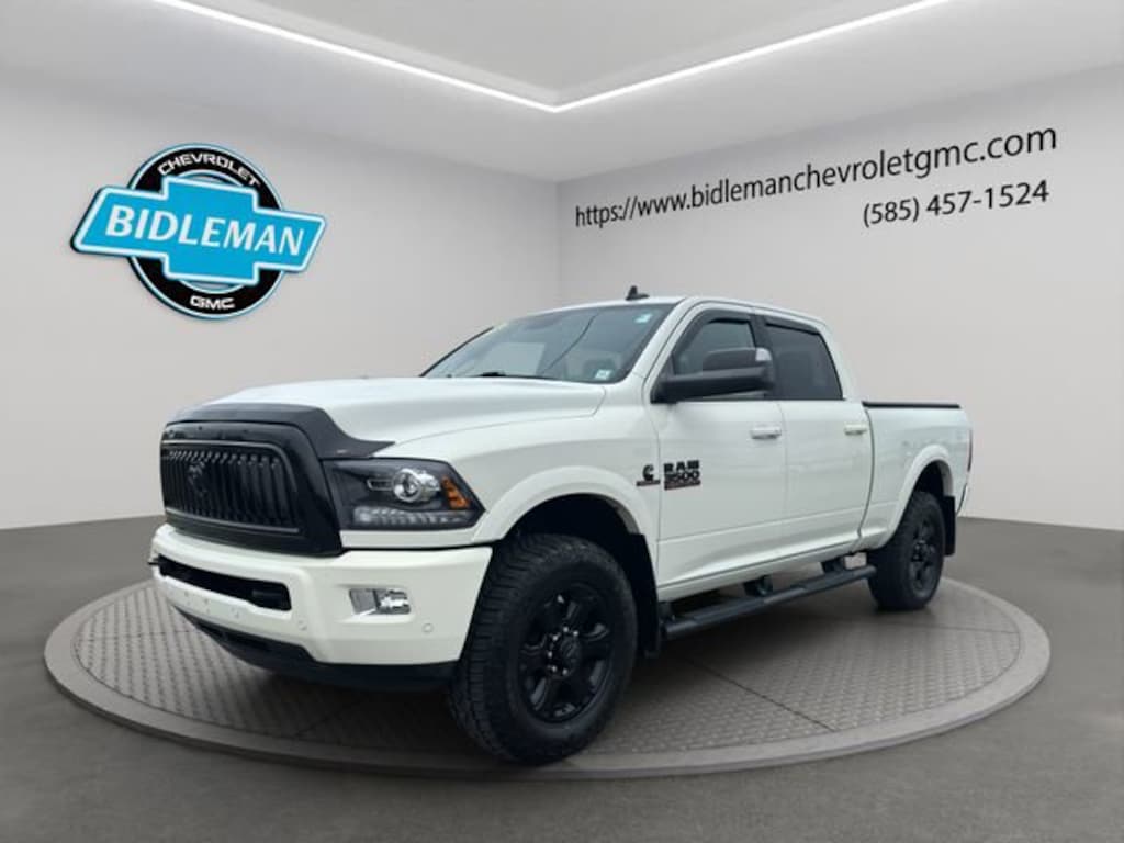 **4 X 4**, 10 Speakers, 220 Amp Alternator, 40/20/40 Split Bench Seat, 5th Wheel/Gooseneck Towing Prep Group, Automatic temperature control, Bi-Function Black Projector Headlamp, Black MIC Exterior Mirrors, Black Premium Tail Lamp, Black Wheel Center Hub, Body Color Door Handles, Body Color Grille w/RAM, Electronically Controlled Throttle, Folding Flat Load Floor Storage, Front Armrest w/Cupholders, Front Center Seat Cushion Storage, Heated steering wheel, High Back Seats, Highline Door Trim Panel, Instrument Panel Premium Bezel, Leather Trim Sport Front Bench Seat, Painted Front Bumper, Painted Rear Bumper, Power Fold Black Trailer Tow Mirror w/Memory, Power Lumbar Adjust, Power Sunroof, Quick Order Package 2FH Laramie, Rear 60/40 Split Folding Seat, Sport Appearance Group, Storage Tray, Ventilated Front Seats, Wheels: 20 x 8.0 Black Painted Aluminum.CARFAX One-Owner. Pearl White 2018 Ram 3500 Laramie4WD 6-Speed Automatic Cummins 6.7L I6 Turbodiesel Odometer is 20160 miles below market average!